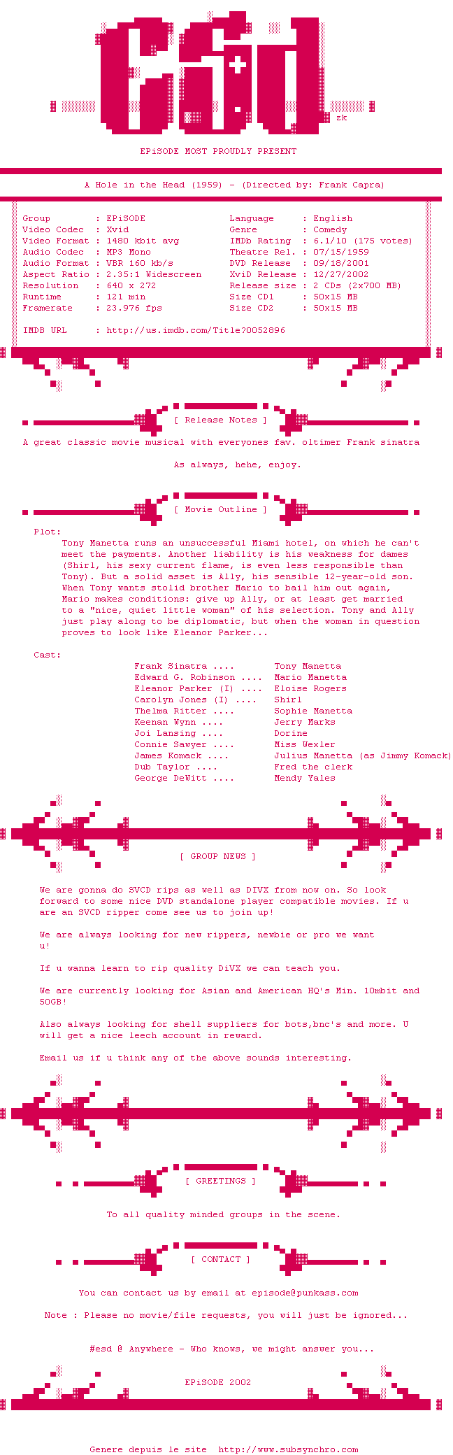 Voir le nfo de la release Eight.Legged.Freaks.2002.REMASTERED.BDRIP.x264-WATCHABLE