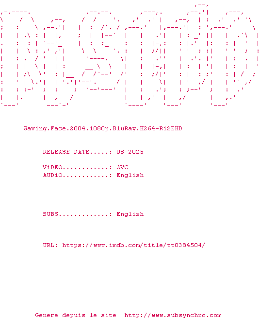 Voir le nfo de la release Saving.Face.2004.1080p.BluRay.H264-RiSEHD