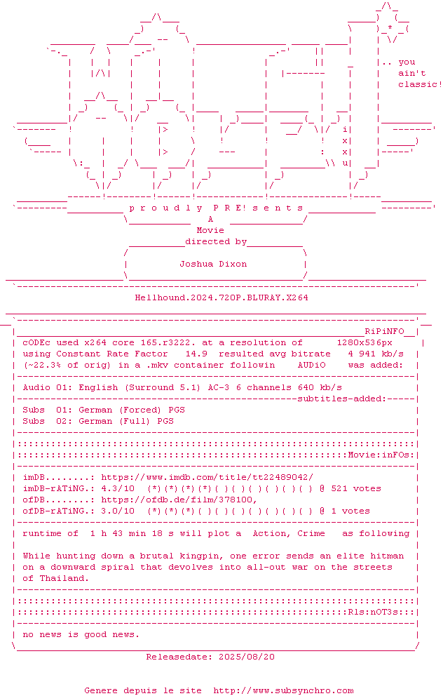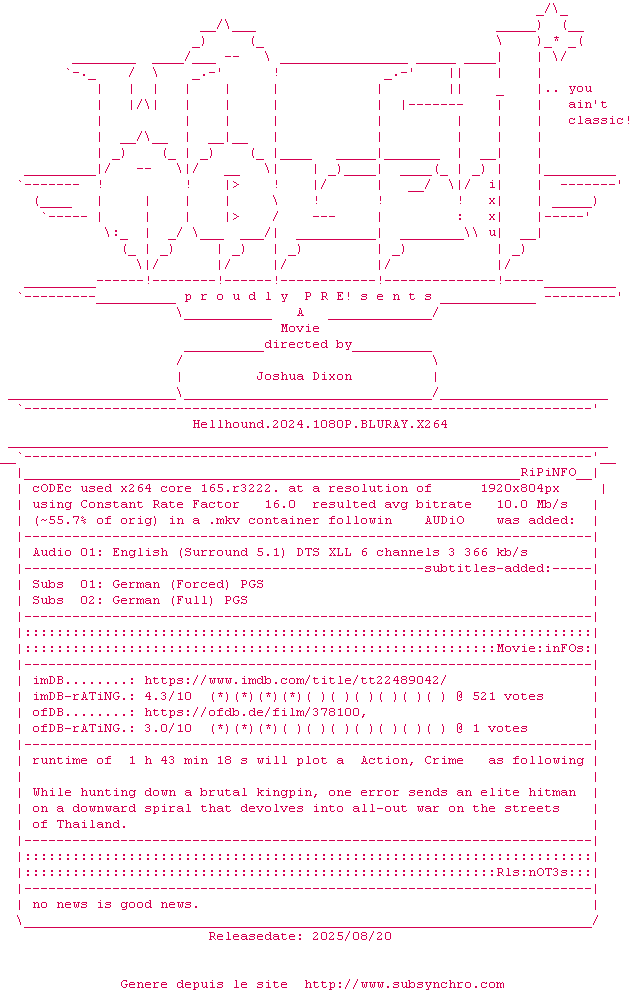 Voir le nfo de la release Hellhound.2024.MULTI.COMPLETE.BLURAY-FULLBRUTALiTY