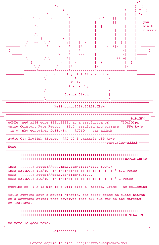 Voir le nfo de la release Hellhound.2024.BDRIP.x264-WATCHABLE