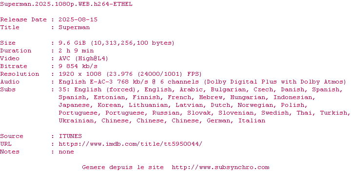 Voir le nfo de la release Superman.2025.1080p.WEB.H264-ETHEL