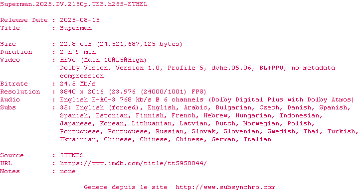 Voir le nfo de la release Superman.2025.DV.2160p.WEB.H265-ETHEL