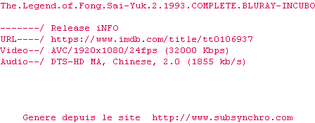 Voir le nfo de la release Tai.Chi.Master.1993.OAR.COMPLETE.BLURAY-INCUBO