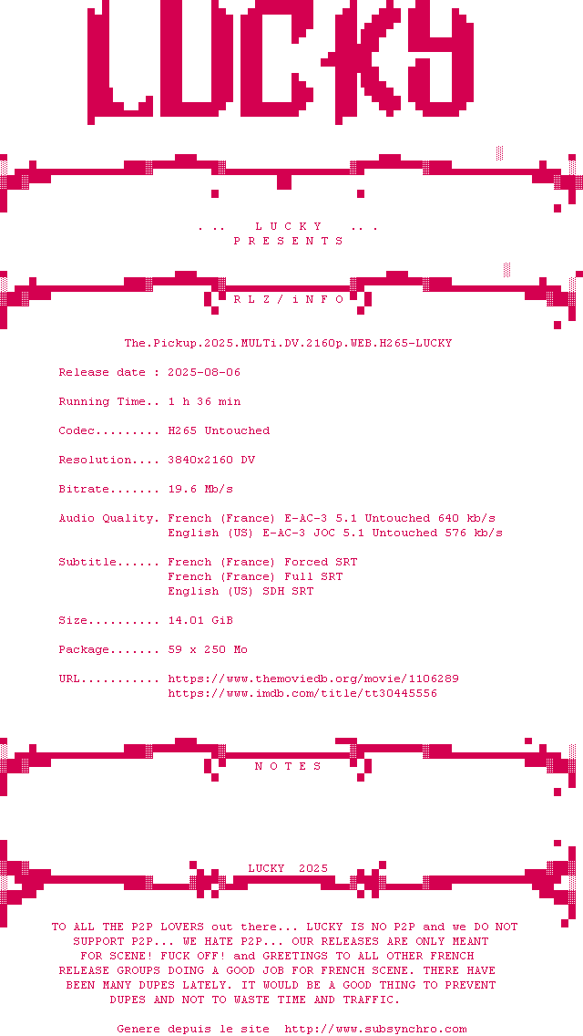 Voir le nfo de la release The.Pickup.2025.MULTi.2160p.WEB.H265-LUCKY