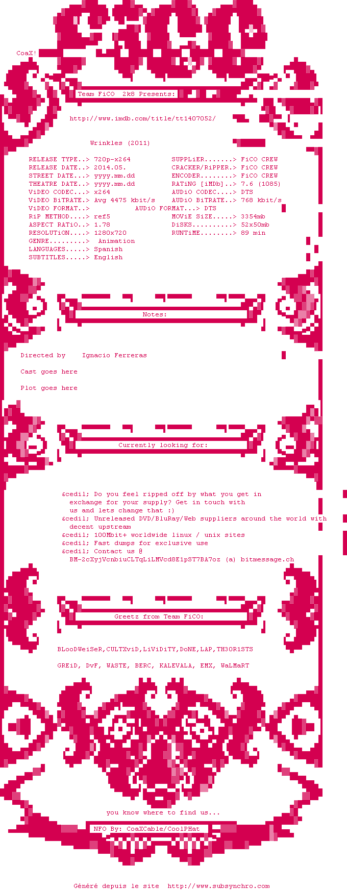 Voir le nfo de la release The.Departed.2006.BluRay.720p.x264-WiKi