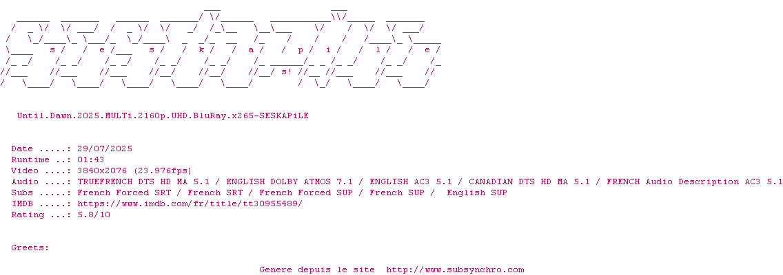 Voir le nfo de la release 28.Years.Later.2025.HDR.2160p.WEB.H265-ETHEL