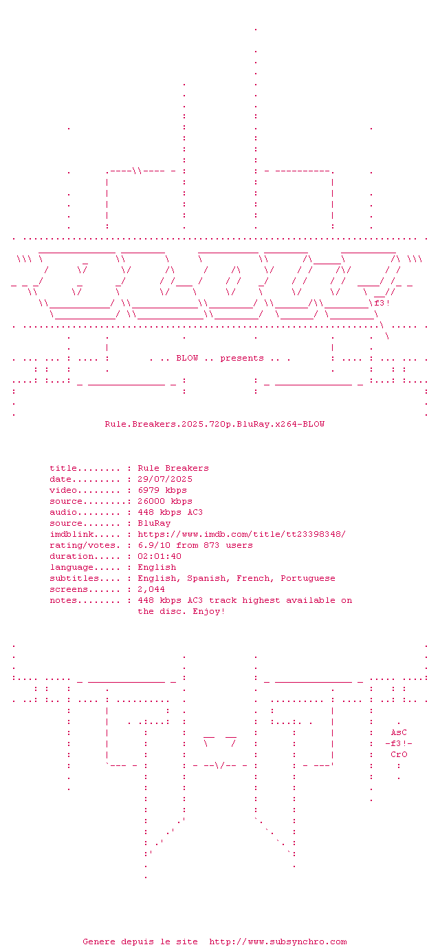 Voir le nfo de la release Rule.Breakers.2025.1080p.BluRay.x264-BLOW