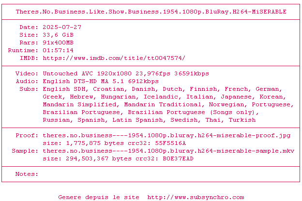 Voir le nfo de la release Theres.No.Business.Like.Show.Business.1954.1080p.BluRay.H264-MiSERABLE