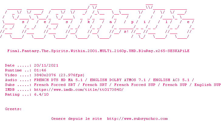 Sous-titres de films synchronises par release
