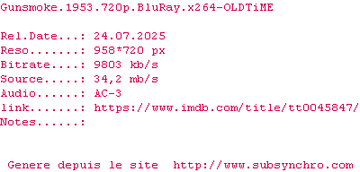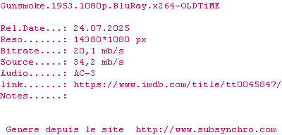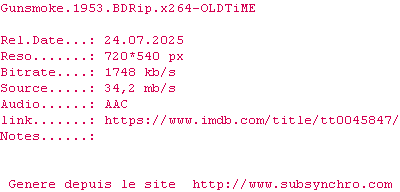 Voir le nfo de la release Gunsmoke.1953.DUAL.COMPLETE.BLURAY.iNTERNAL-FULLSiZE