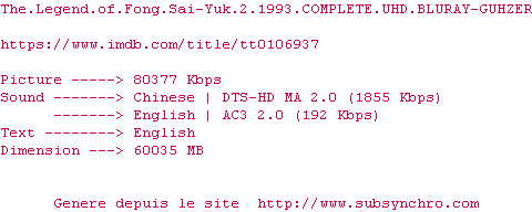 Voir le nfo de la release The.Legend.Of.Fong.Sai-Yuk.2.1993.COMPLETE.UHD.BLURAY-GUHZER