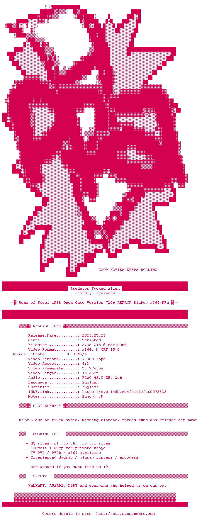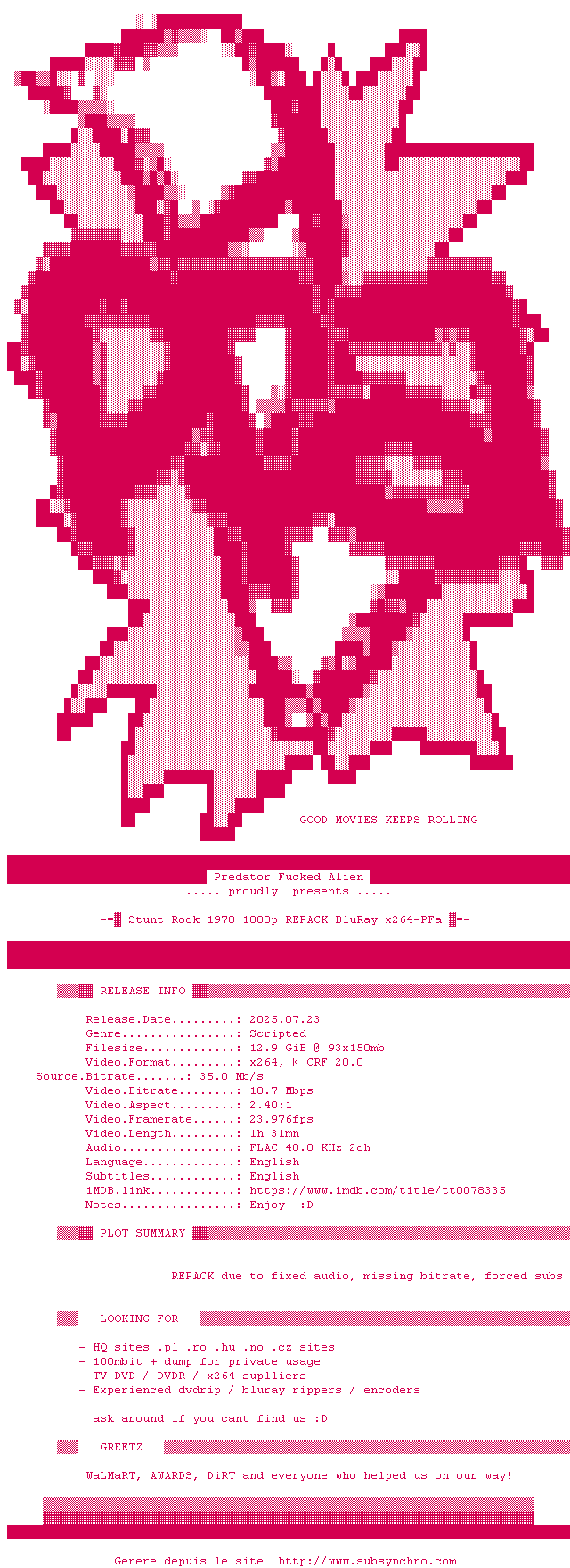 Voir le nfo de la release Le.Cri.Du.Desir.1977.FRENCH.1080p.BluRay.x264-UKDHD