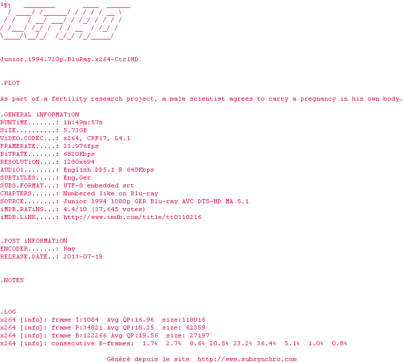 Voir le nfo de la release Junior.1994.720p.BluRay.x264-CtrlHD