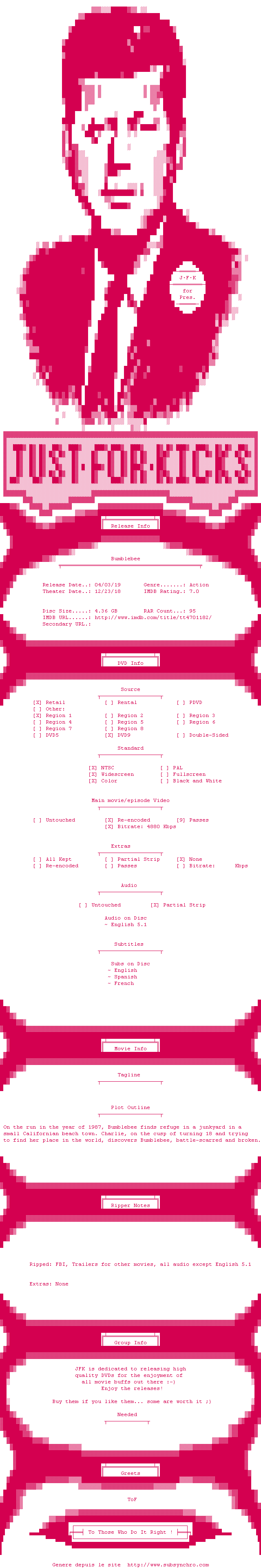 Voir le nfo de la release Bumblebee.2018.DVDR-JFKDVD