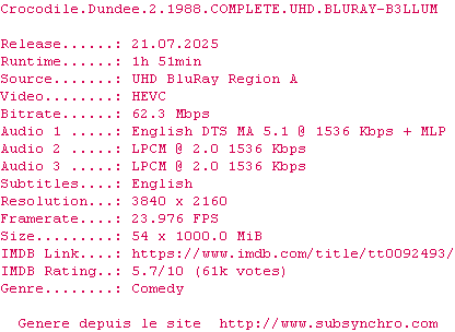 Voir le nfo de la release You.Can.Count.On.Me.2000.2160p.UHD.BluRay.x265-B0MBARDiERS