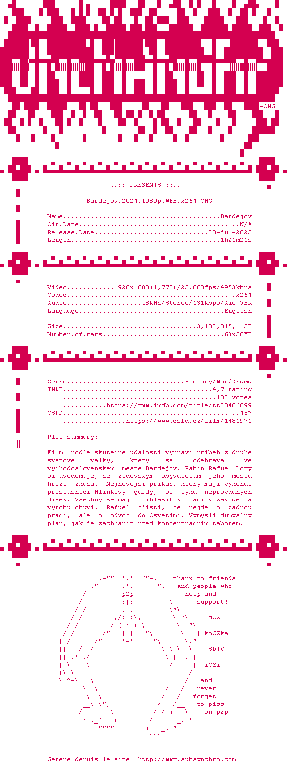 Voir le nfo de la release Bardejov.2024.1080p.WEB.x264-OMG