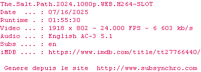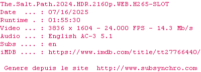 Voir le nfo de la release The.Salt.Path.2024.HDR.2160p.WEB.H265-SLOT