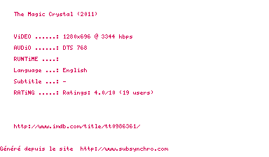 Voir le nfo de la release The.Magic.Crystal.2011.720p.BluRay.x264-MELiTE