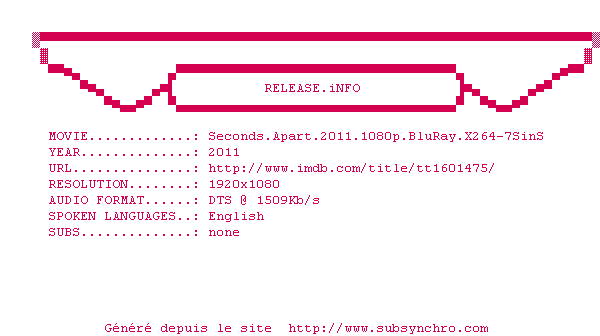 Voir le nfo de la release Seconds.Apart.2011.1080p.BluRay.X264-7SinS