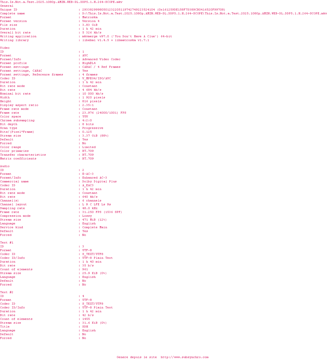 Voir le nfo de la release This.Is.Not.A.Test.2025.1080p.AMZN.WEB-DL.DDP5.1.H.264-SCOPE