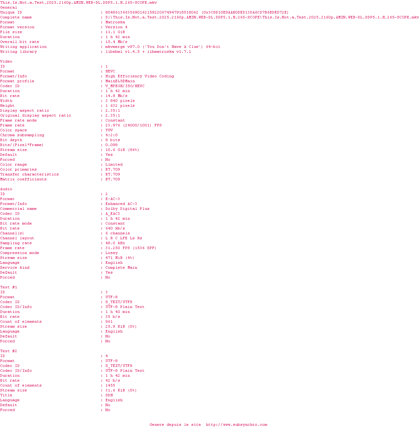 Voir le nfo de la release This.Is.Not.A.Test.2025.2160p.AMZN.WEB-DL.DDP5.1.H.265-SCOPE