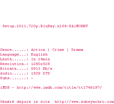 Voir le nfo de la release Setup.2011.720p.BluRay.x264-SAiMORNY