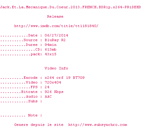 Voir le nfo de la release Jack.Et.La.Mecanique.Du.Coeur.2013.FRENCH.1080p.BluRay.x264-LOST