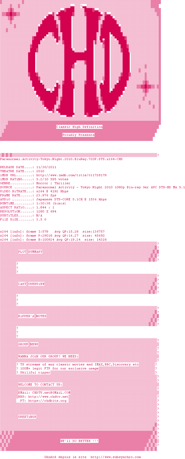 Voir le nfo de la release Dnevnoy.dozor.2006.Unrated.720p.BluRay.DTS.x264-CtrlHD