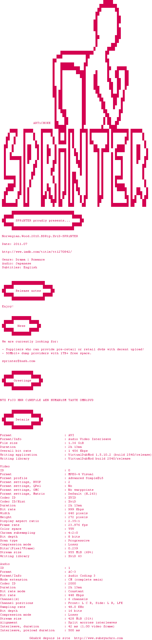 Voir le nfo de la release I.Saw.The.Devil.2010.720p.BluRay.x264-HD4U