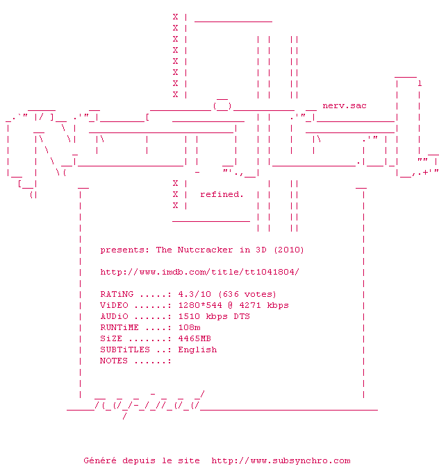 Voir le nfo de la release The.Nutcracker.in.3D.LIMITED.DVDRip.XviD-NeDiVx