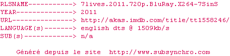 Voir le nfo de la release 7lives.2011.720p.BluRay.X264-7SinS