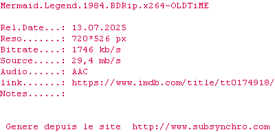 Voir le nfo de la release Mermaid.Legend.1984.BDRip.x264-OLDTiME