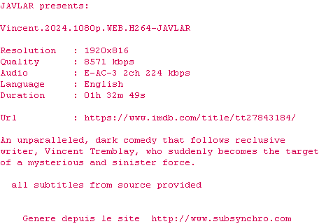 Voir le nfo de la release Vincent.2024.1080p.WEB.H264-JAVLAR
