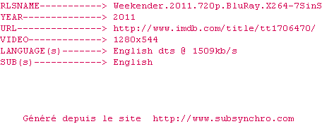 Voir le nfo de la release Weekender.2011.720p.BluRay.X264-7SinS