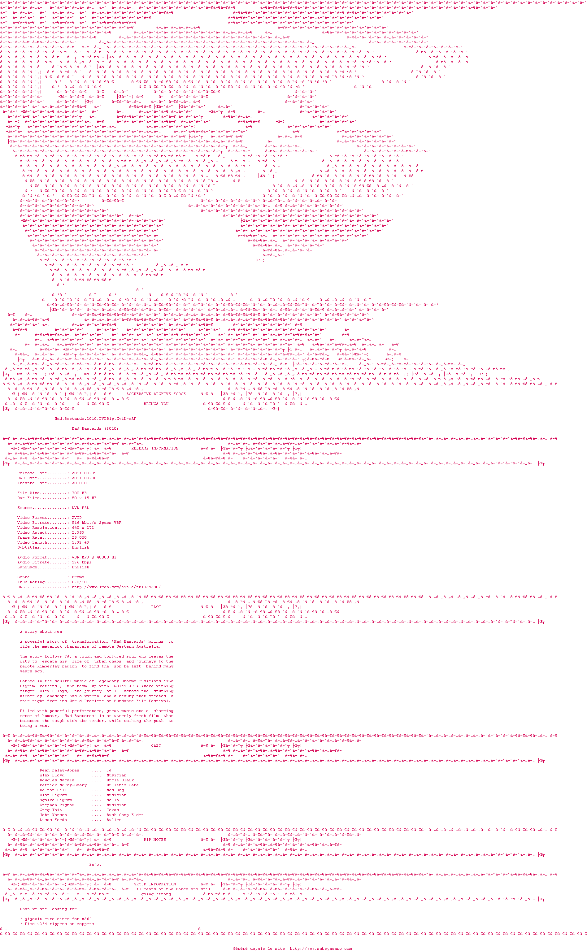 Voir le nfo de la release Mad.Bastards.2010.DVDRip.XviD-aAF