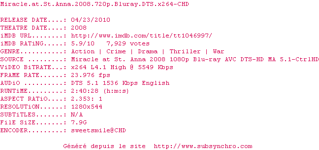 Voir le nfo de la release Fast.and.Furious.2009.720p.DTS.BluRay-CtrlHD