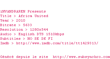 Voir le nfo de la release Africa.United.2010.720p.BluRay.x264-iNVANDRAREN