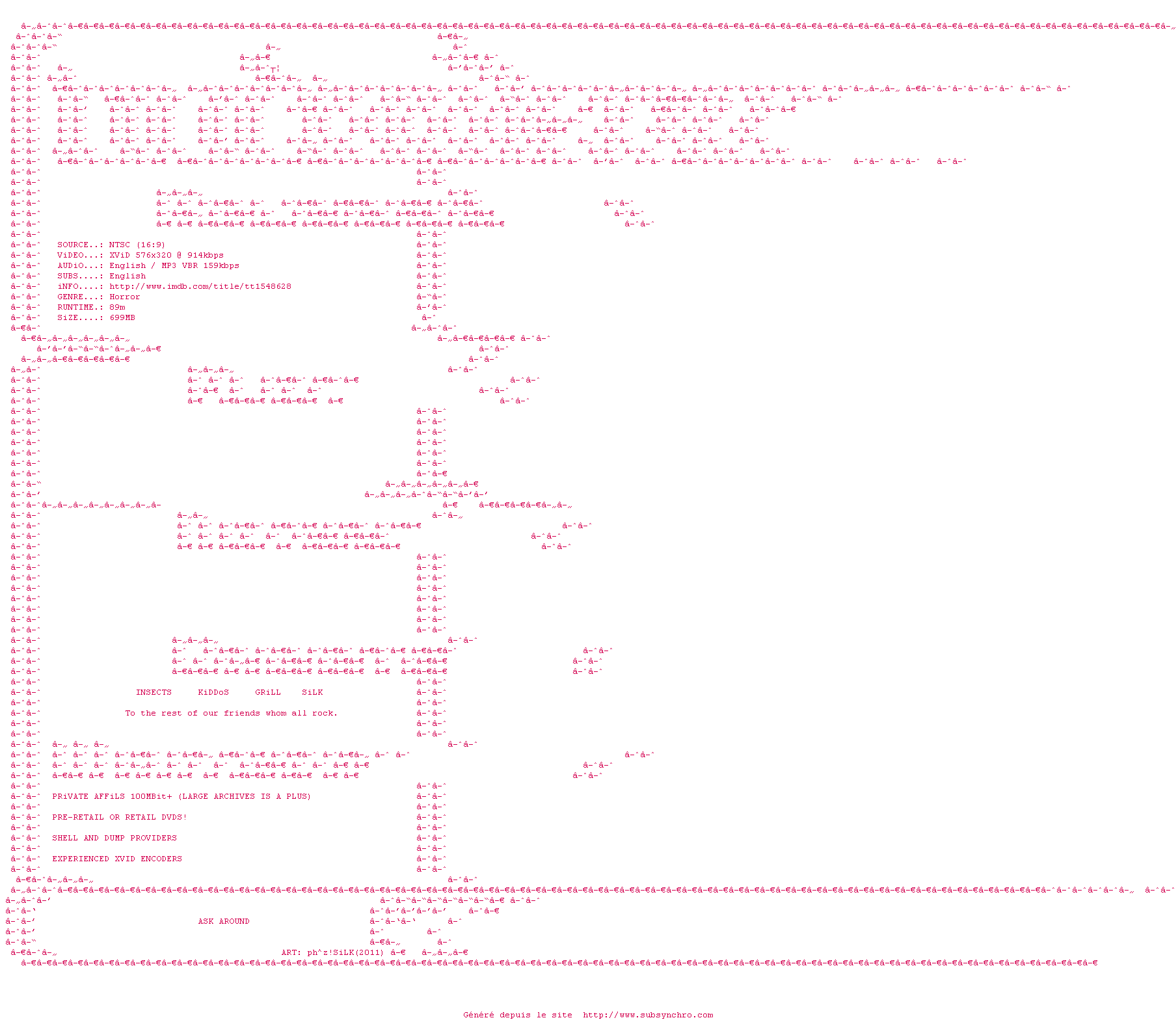 Voir le nfo de la release Scream.of.the.Banshee.2011.DVDRip.XViD-DOCUMENT