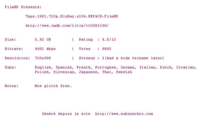 Voir le nfo de la release Taps.1981.720p.BluRay.x264.REPACK-FilmHD