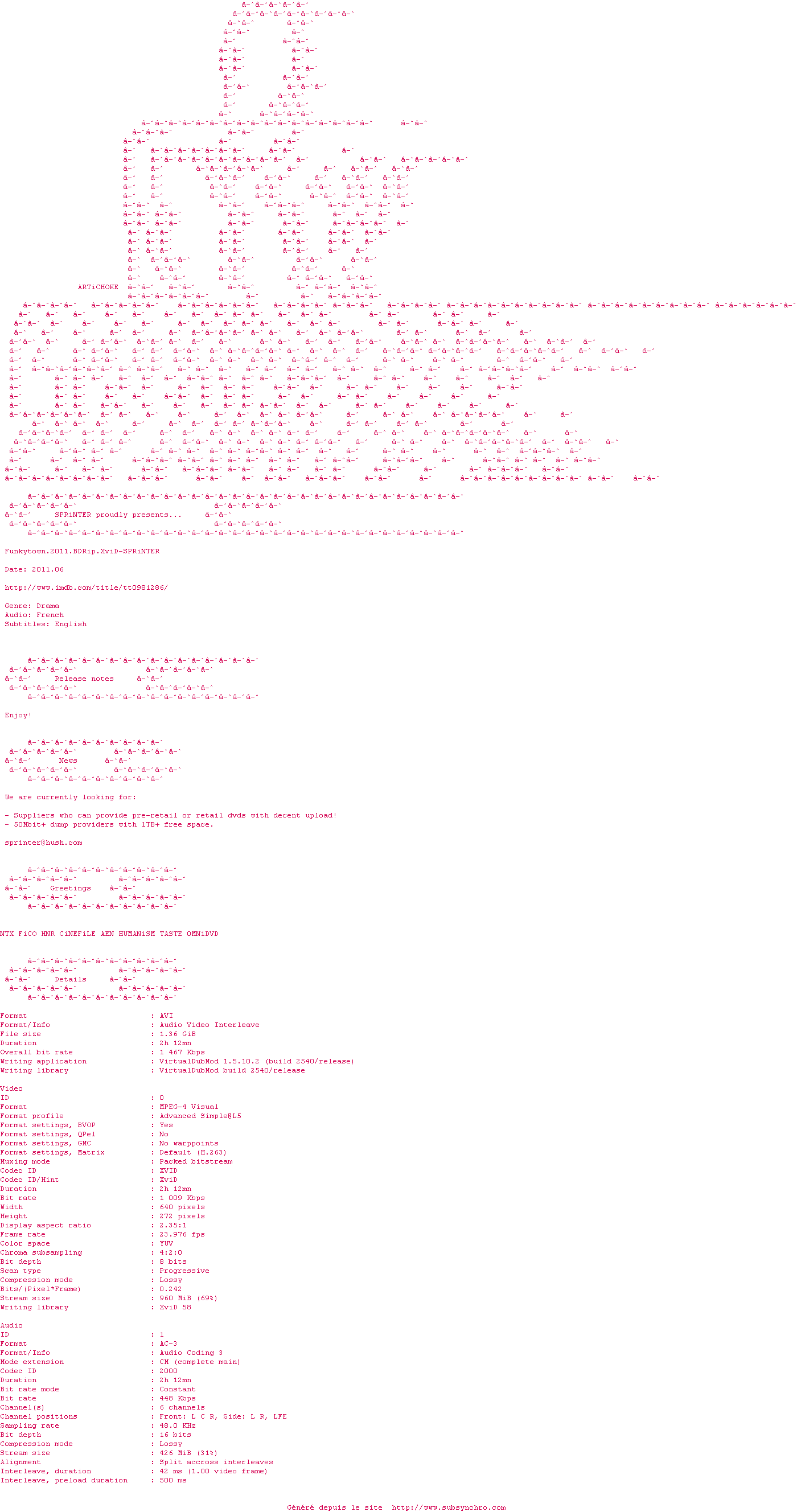 Voir le nfo de la release Funkytown.2011.BDRip.XviD-SPRiNTER