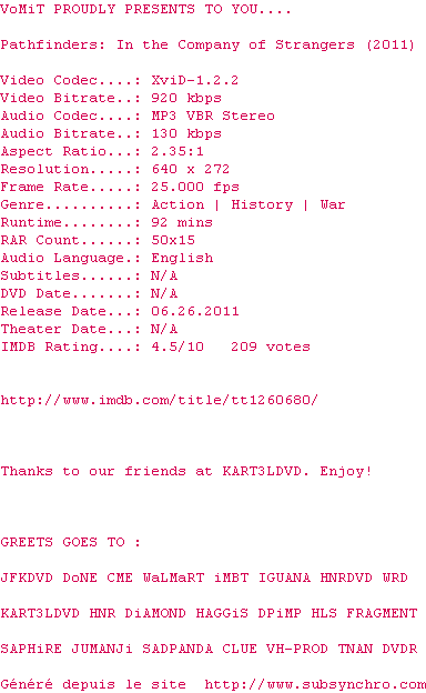 Voir le nfo de la release Trust.2010.LIMITED.720p.BluRay.x264-MHD
