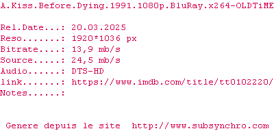 Voir le nfo de la release A.Kiss.Before.Dying.1991.1080p.BluRay.x264-OLDTiME