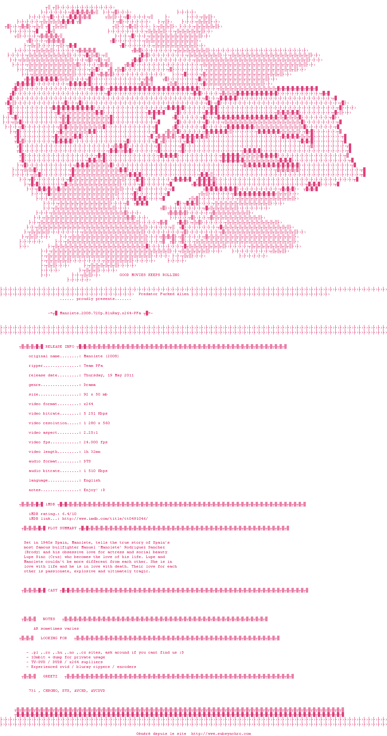 Voir le nfo de la release Manolete.2008.720p.BluRay.x264-PFa