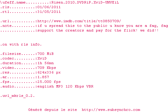Voir le nfo de la release Unknown.2011.DVDRip.XviD-MAXSPEED
