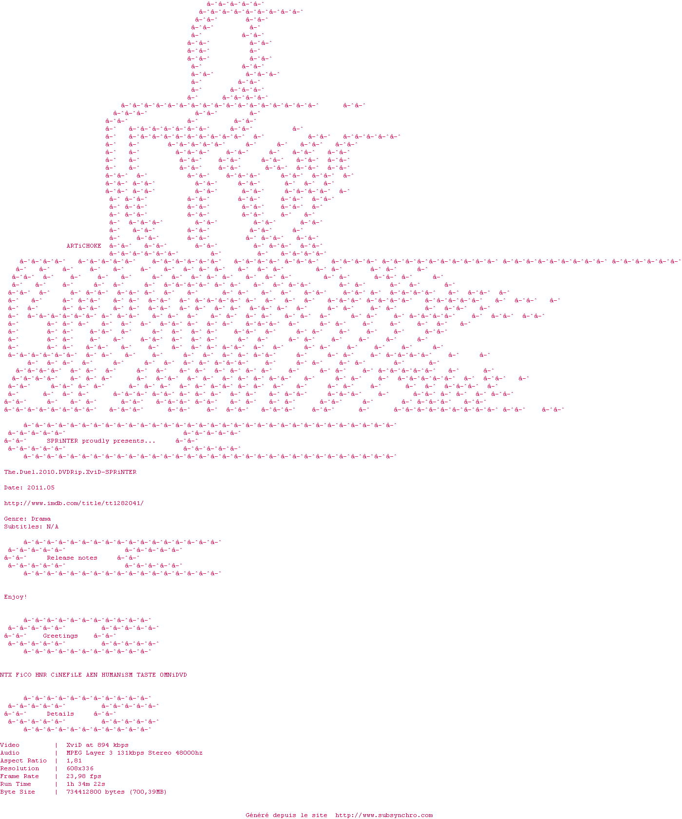 Voir le nfo de la release The.Duel.2010.DVDRip.XviD-SPRiNTER