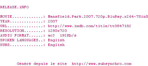 Voir le nfo de la release Mansfield.Park.2007.720p.BluRay.x264-7SinS