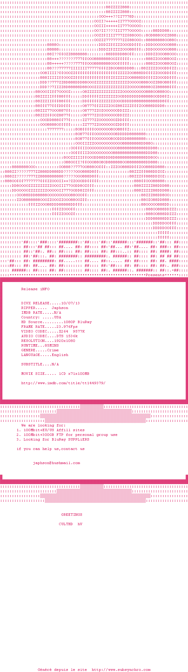Voir le nfo de la release Caught.In.The.Crossfire.2010.1080p.BluRay.x264-Japhson