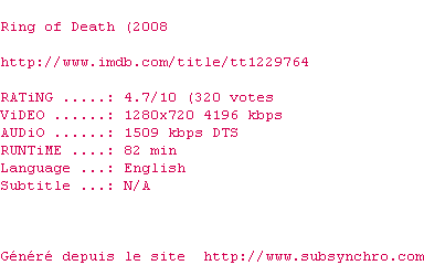 Voir le nfo de la release Ring.of.Death.2008.720p.BluRay.x264-MELiTE