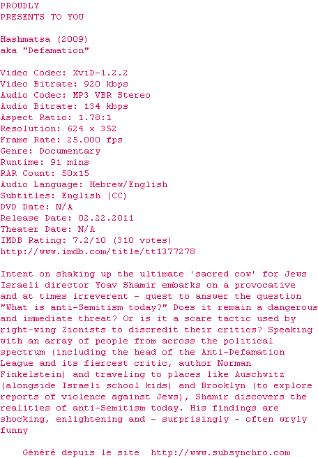 Voir le nfo de la release Defamation.2009.DVDRip.XviD-VoMiT