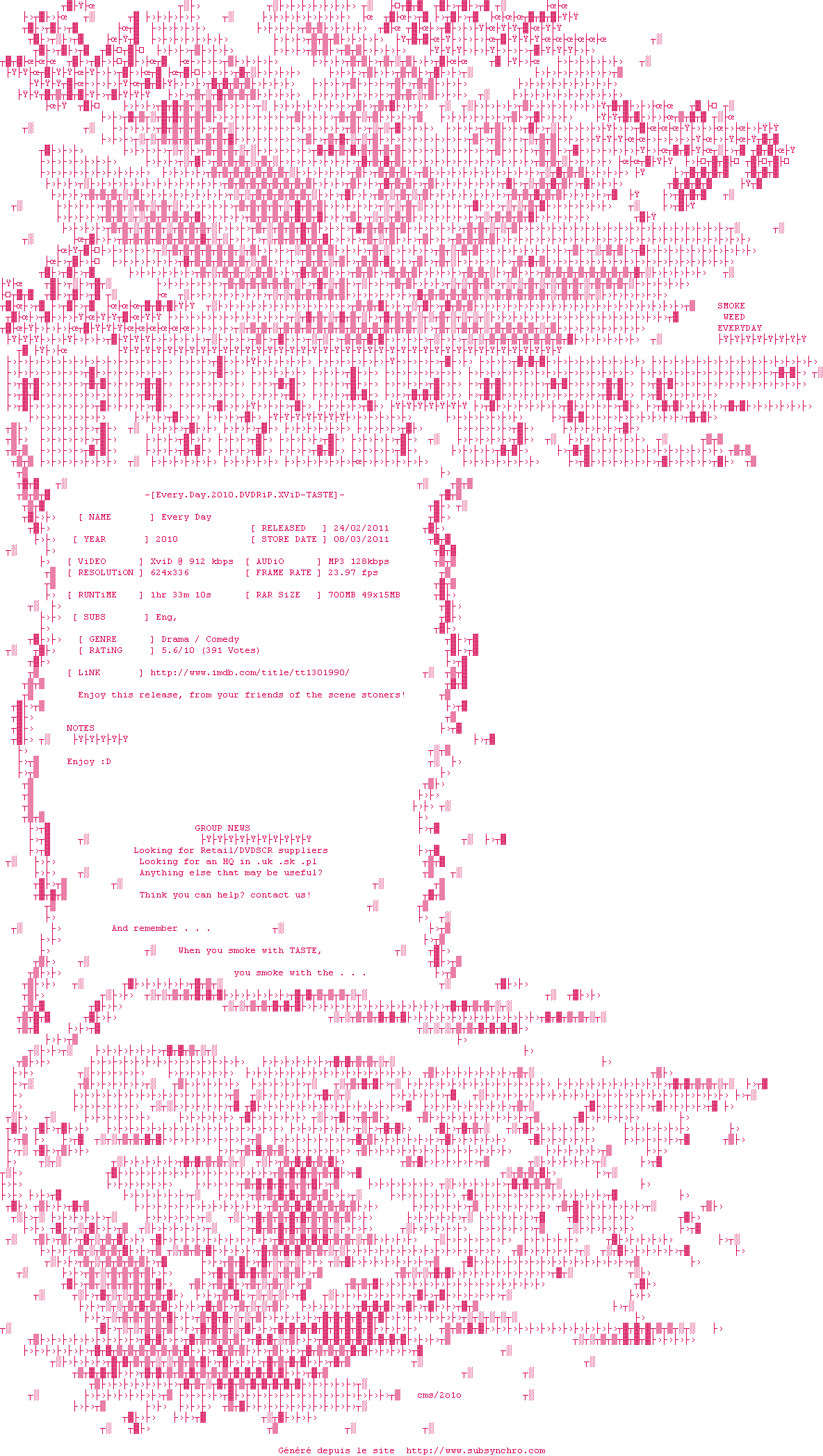 Voir le nfo de la release Every.Day.2010.DVDRiP.XViD-TASTE